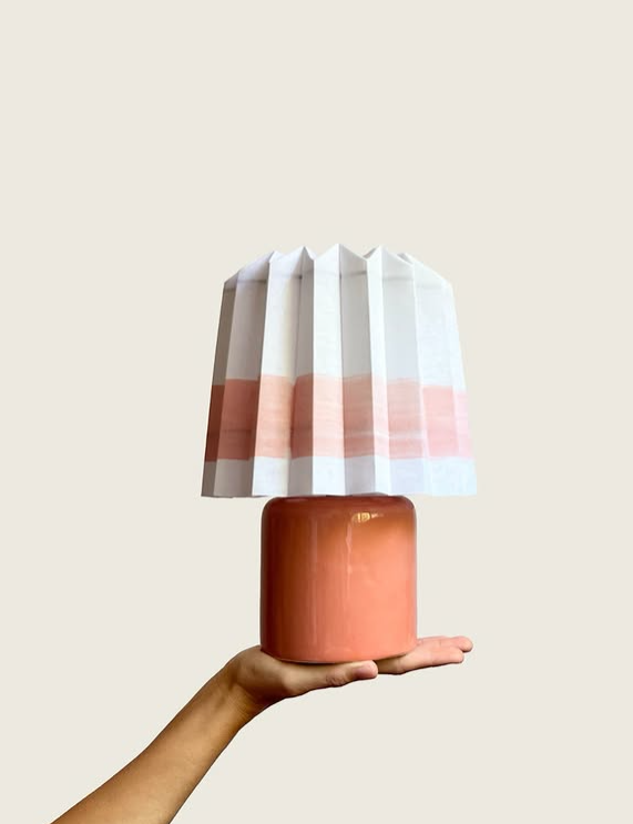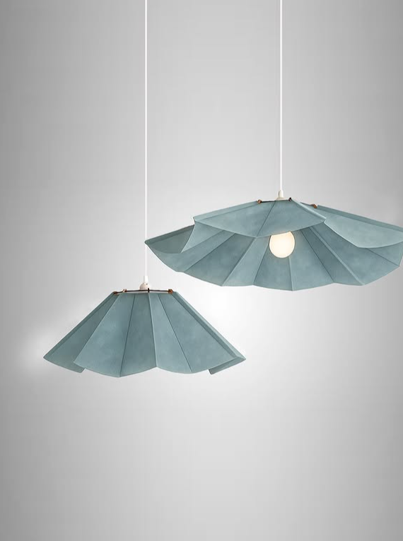 Lámparas y veladores de tela plisada.
