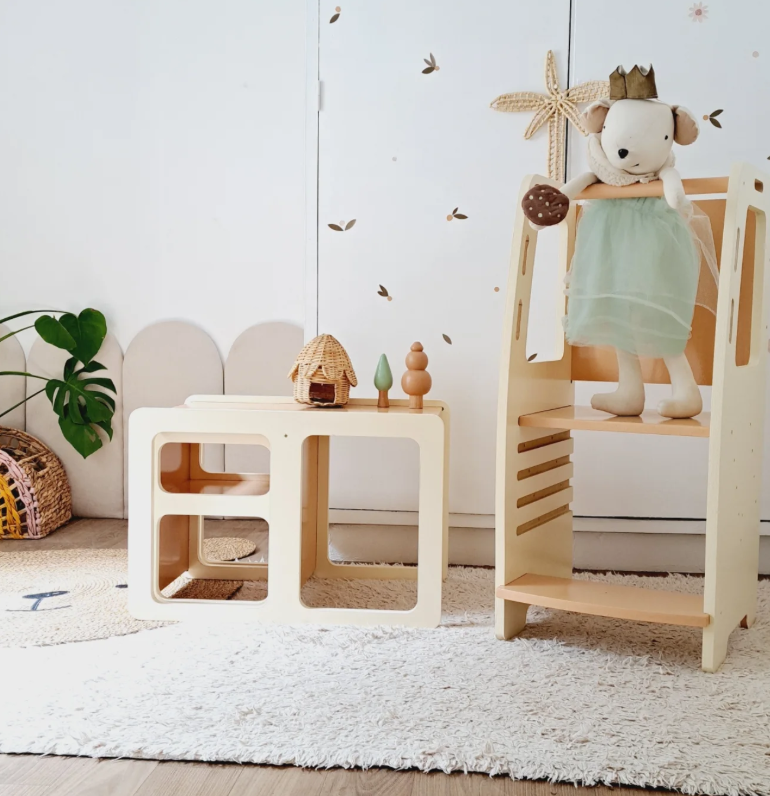 Mobiliario Infantil Montessori. Juegos y elementos para la primera infancia pintados a mano.